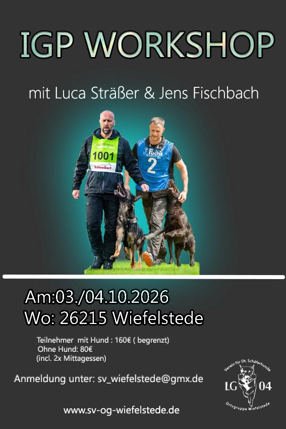Am Samstag waren wir in der OG Voslapp. Unsere Vereinsmitglieder Vera & Vivi sind erfolgreich in der Stufe IGP1 gestartet